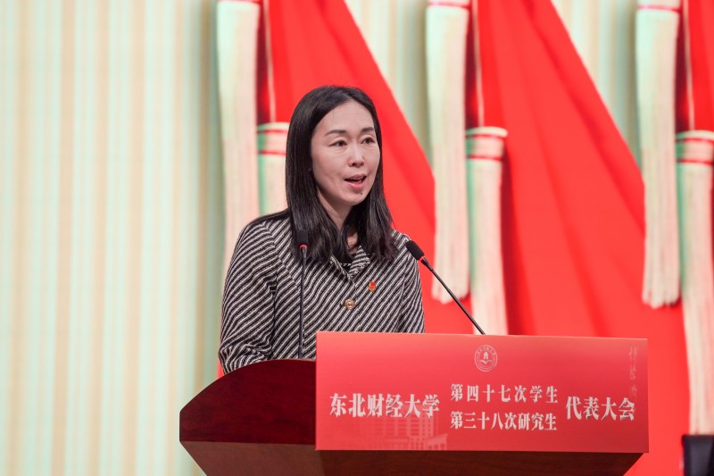 于越代表团市委、市学联向大会的召开表示热烈祝贺,并对学校团学组织在服务地方发展、创新实践等方面取得的优异成绩给予充分肯定。她勉励学校青年学子坚守财经报国初心使命,做信念坚定、勤学笃行、勇毅前行的新时代财经青年。她希望各级团学组织聚焦同学需求,用心用情办实事;坚持从严治会,打造过硬骨干队伍;立足财经特色,创新开展专业赋能。她诚挚邀请青年学子了解大连、扎根大连,凭借财经专业所长,为奋力谱写中国式现代化大连实践的崭新篇章贡献青春力量。
