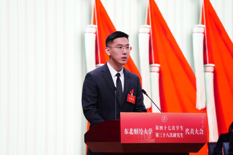 会上,邢博凯代表第四十六届学生会主席团、第三十七届研究生会主席团作工作报告。